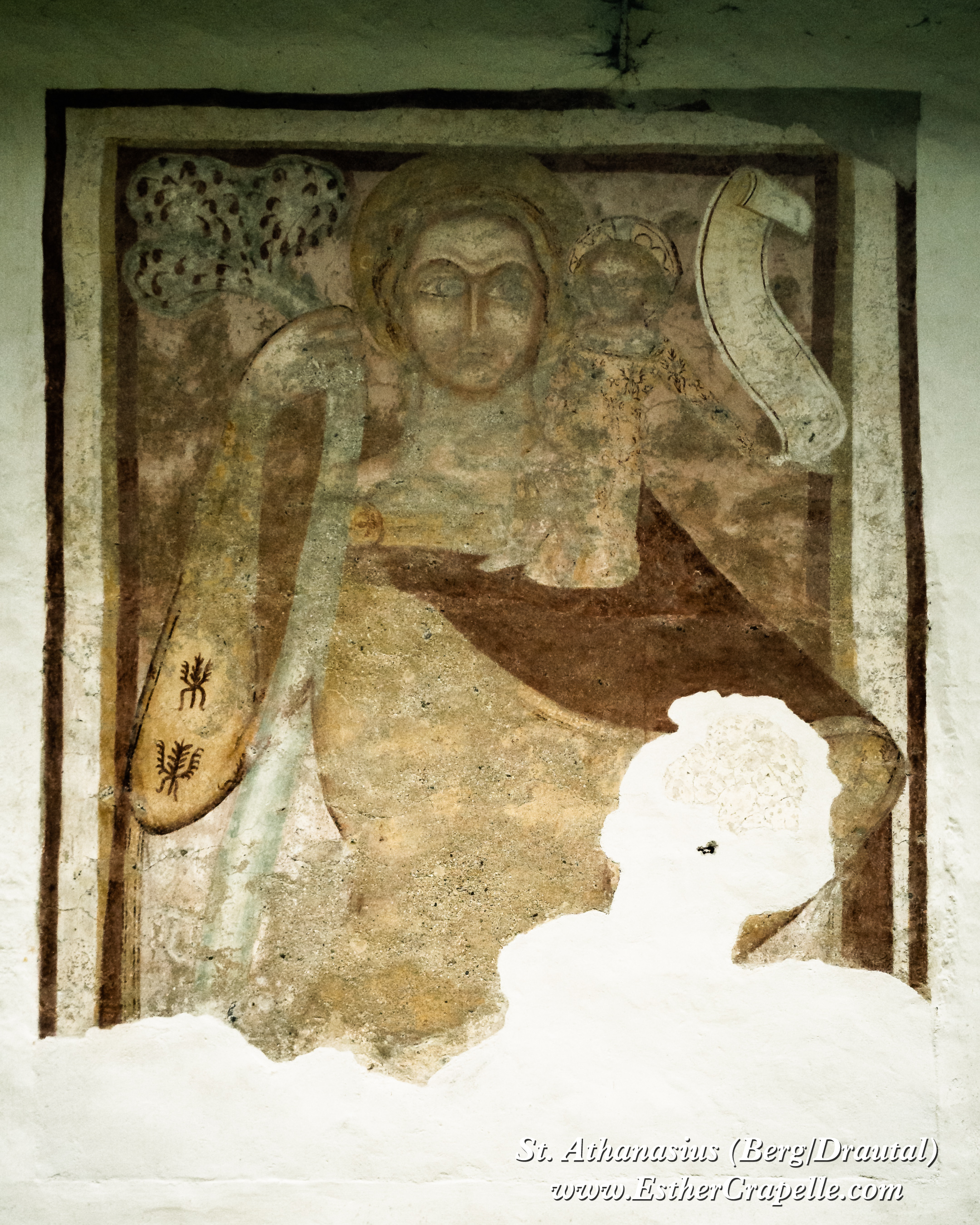 Die doch etwas außergewöhnliche form der kirche resultiert aus dem mix des spätgotischen chors, dem romanischen langschiff und der im barock dazugebauten sakristei. Sehenswert sind auch einige fresken aus dem 15. und 16. jahrhundert.